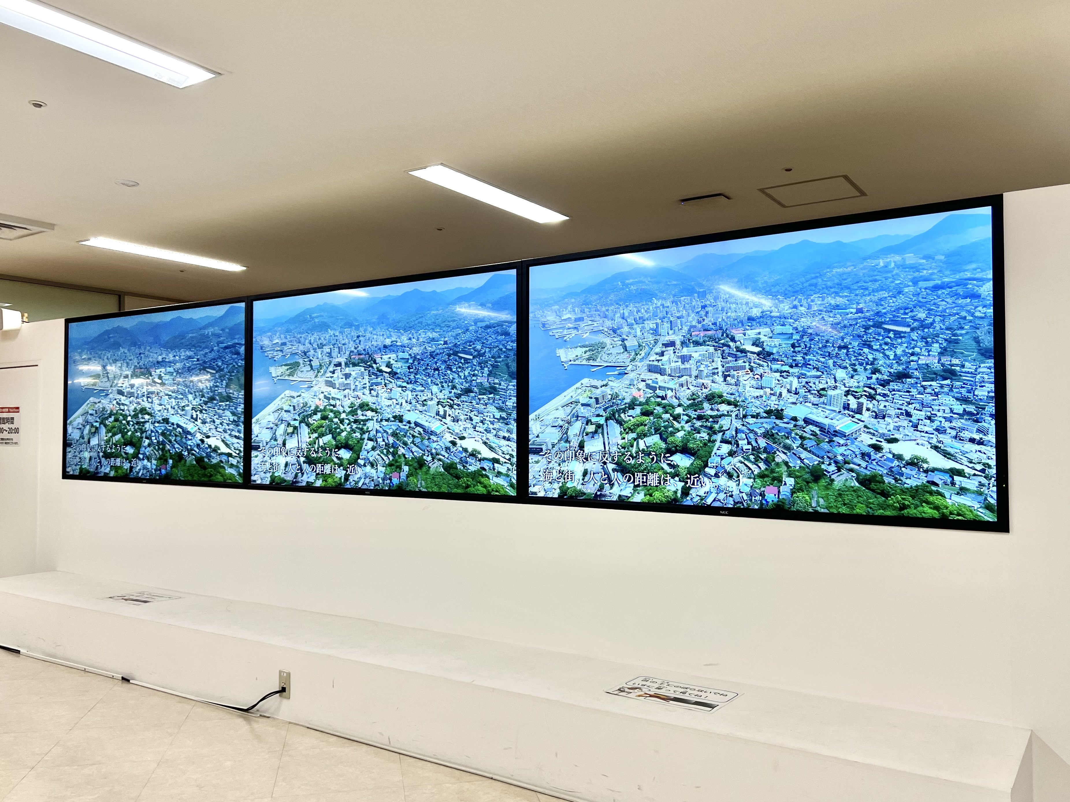 84型ディスプレイでの大阪府全市町村の観光PR映像放映やパンフレット・ポスターの設置により、日本三大夜景都市である長崎市・北九州市・横浜市の魅力を発信いたします。