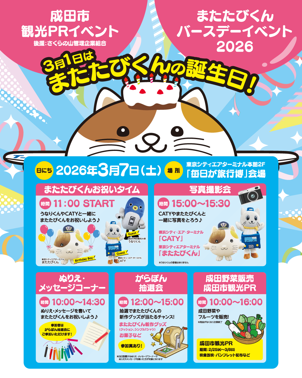 | 「成田市観光PRイベント(後援:さくらの山管理企業組合)」×「またたびくんバースデーイベント2026」 |